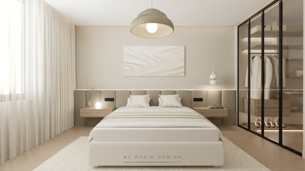 Réalisation novembre 2025Commercial – maison Accompagnement : BOOK PROJECTION 3D Corlay – COTES D’ARMOR (22) Minimalisme, douceur et désir : bienvenue dans Le Cocon Minéral. Un concept imaginé pour un projet de love room haut de gamme, pensé comme un refuge apaisant et sensuel. Des tons de beige, des textures minérales et une lumière diffuse pour une atmosphère à la fois intime et contemporaine. Un projet où le design s’exprime dans la simplicité, la matière et l’émotion