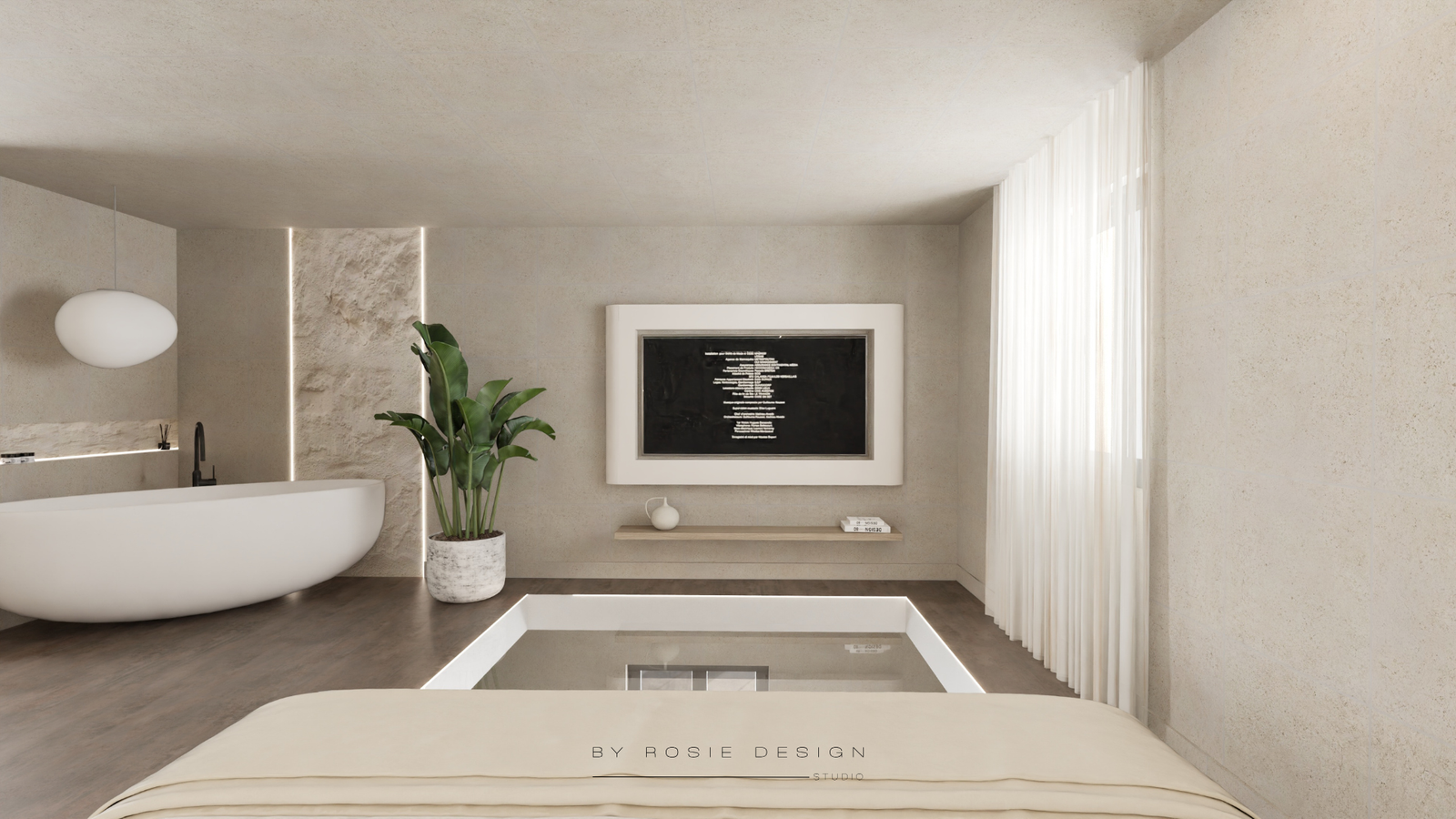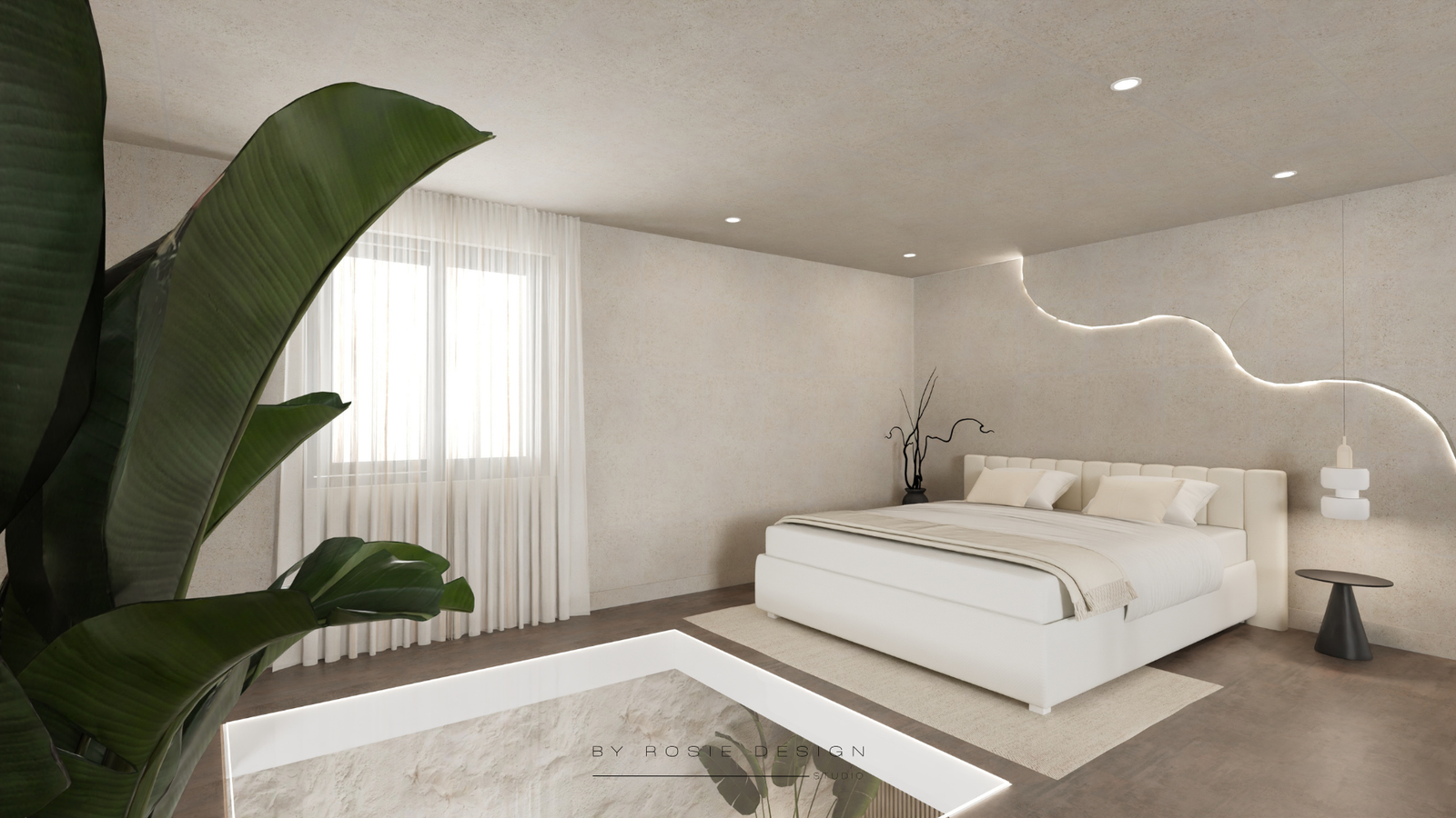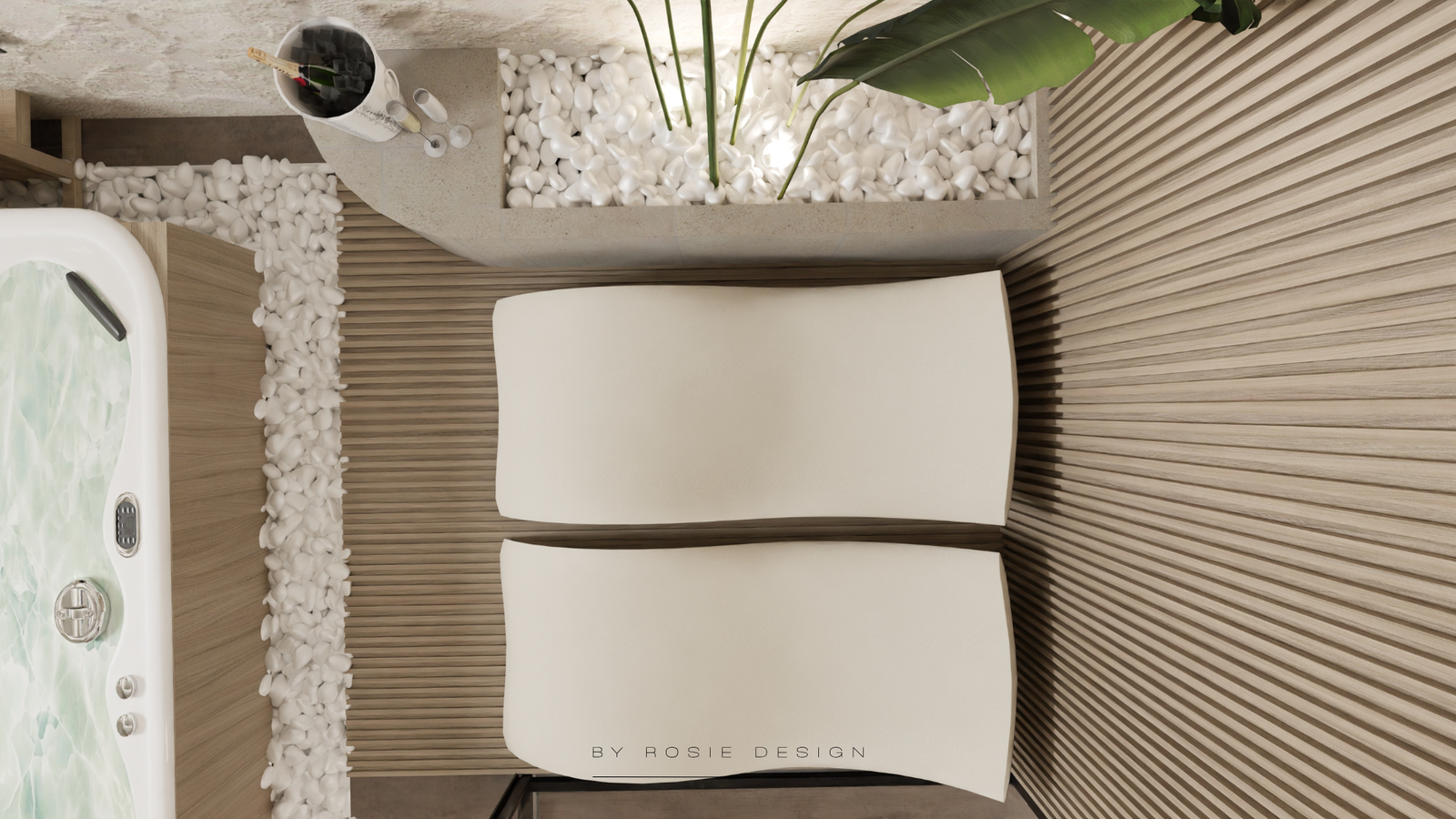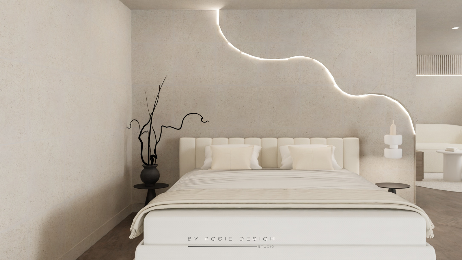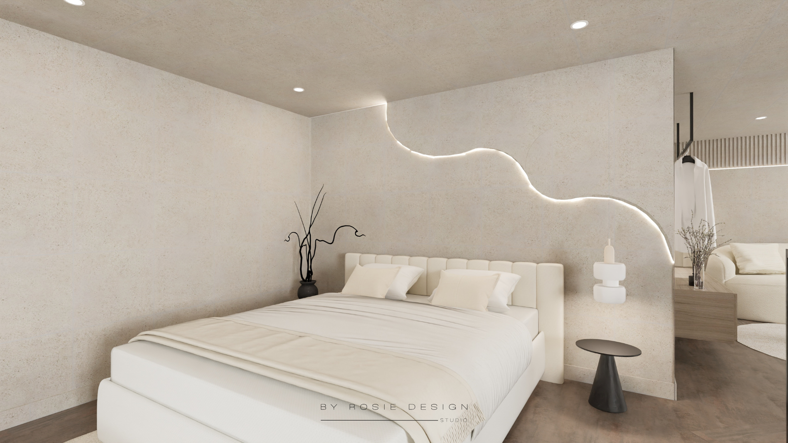 Minimalisme, douceur et désir : bienvenue dans Le Cocon Minéral. Un concept imaginé pour un projet de love room haut de gamme, pensé comme un refuge apaisant et sensuel.