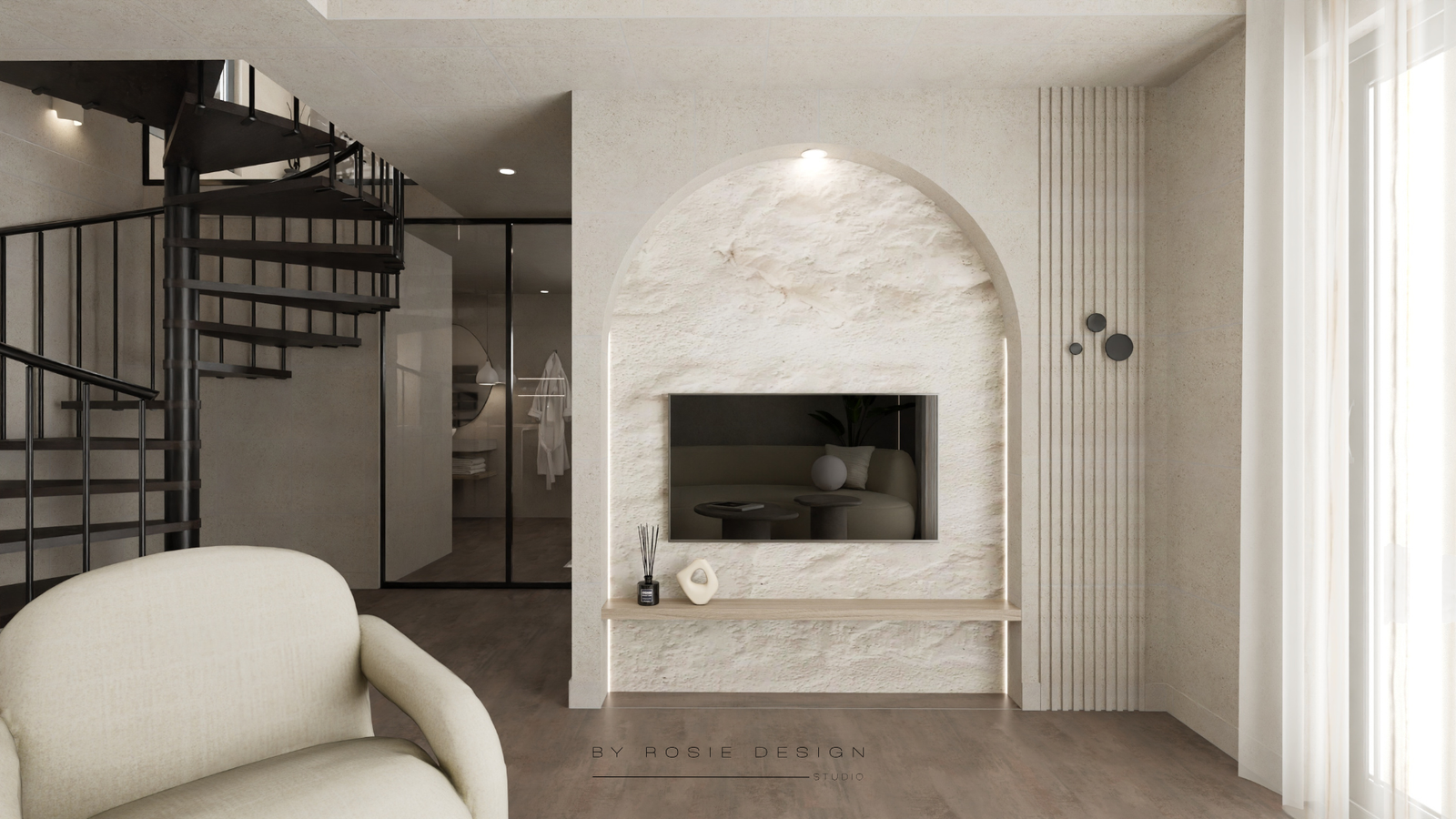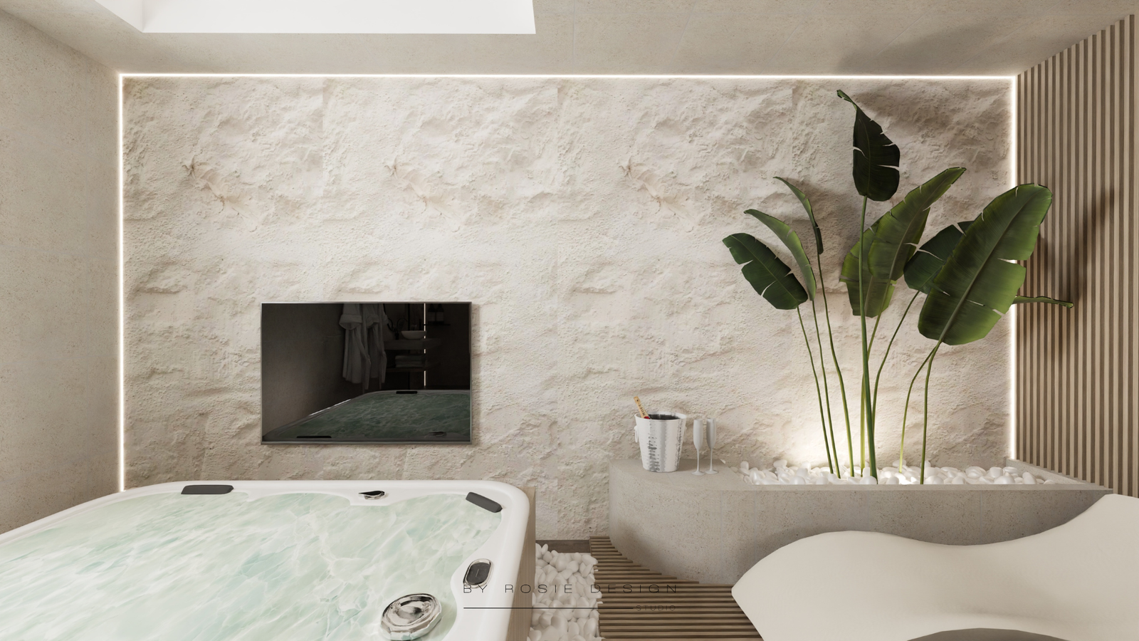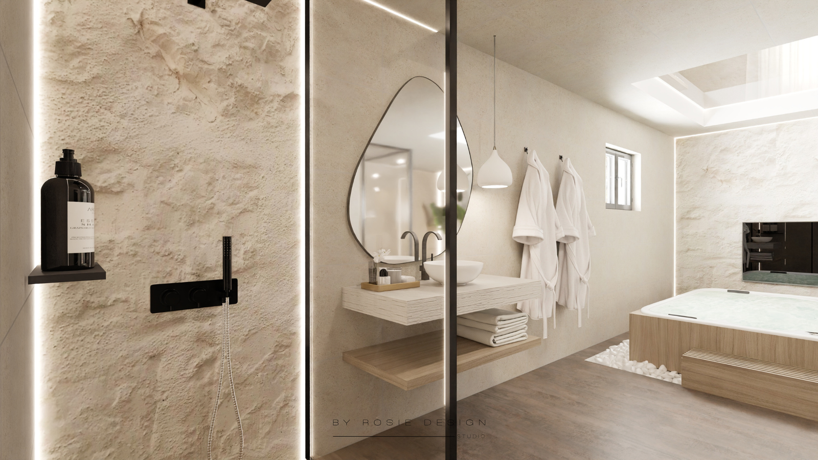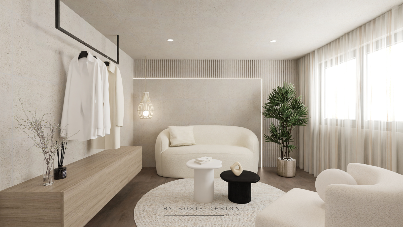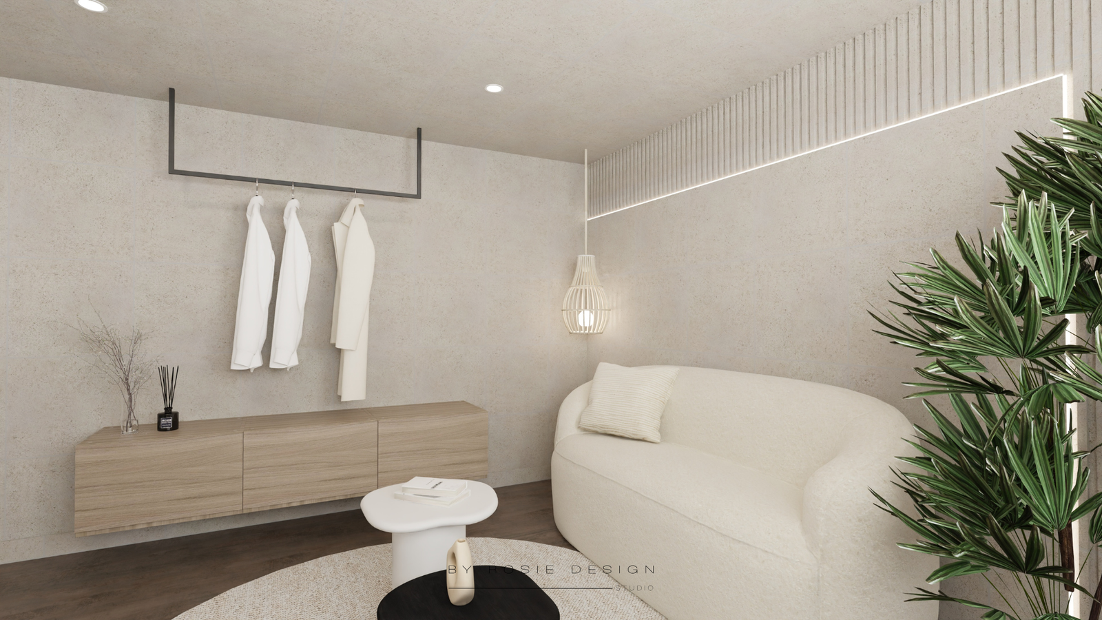 Minimalisme, douceur et désir : bienvenue dans Le Cocon Minéral. Un concept imaginé pour un projet de love room haut de gamme, pensé comme un refuge apaisant et sensuel.